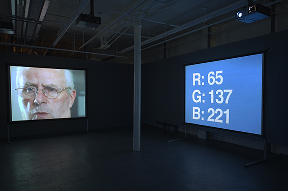 The subjects in each video range from sleight of hand card tricks, official US government reports on the ‘friendly fire’ killing of Specialist Pat Tillman in Afghanistan and Gerhard Richter’s writings on political ideology. The grading processes transform the images into false historical documents (despite the dubious ‘authenticity’ of their texts); this identifies their position as material, as mutable, as having a surface, as being susceptible to transformation or change. In this manner the material of video functions as a kind of propaganda, in having two sides, in both causing transformation of narrative and being subject to transformation by narrative. Hunter’s text is apposite in this context as it attempts to codify kinds of propaganda into a range of colour designations: black, white, grey, blue. He acknowledges an inherent duplicity in the context of political statements made during a time of war; that propaganda is, by turns, both true and false. This dialogue and its remediation as a video document establish a contextual lexicon where the intersection of colour as a grading device and grading as a form of video manipulation are explored.