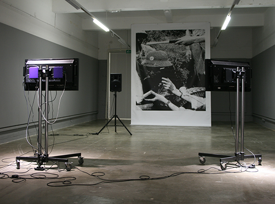 Point Of Audition (reverse ADR) Two channel synchronised HD video, LCD screens, Unicol k-stands & active speaker Dim. var. 2009