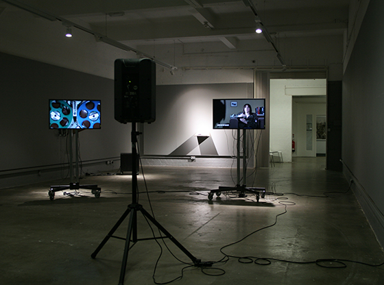 Point Of Audition (reverse ADR) Two channel synchronised HD video, LCD screens, Unicol k-stands & active speaker Dim. Var. 2009