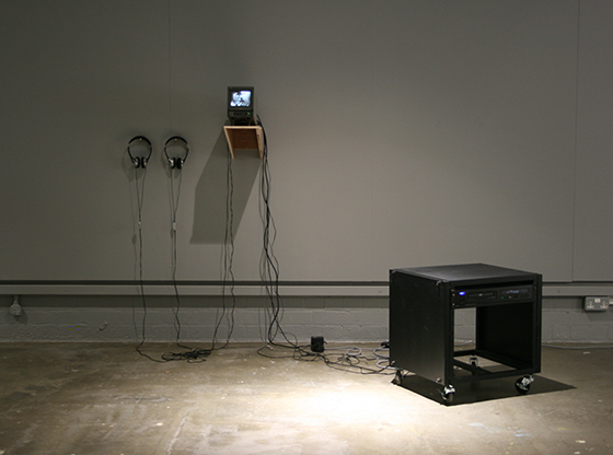 Peer To Peer (Partially downloaded Letter To Jane) 67.4% of an avi file transferred to DVD, field monitor, DVD player, rack-mount, pre-amp, headphones & timber shelf 2009