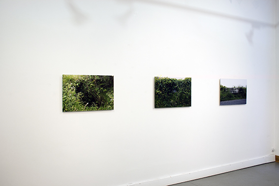 Neutral States is set around the legacy of Second World War battlement infrastructure along the Shannon Estuary. Commissioned and produced by Askeaton Contemporary Arts in 2011, Hughes’ project examines ideas of the ‘neutral state’, not solely as it pertains to the neutrality of Ireland during the Second World War, but also as an exploratory idea of historical memory and site as an ever-evolving understanding. A sound work was produced from interviews made with Michael Foley, John Guinane and Michael D. Ryan, all of whom had volunteered in the Local Security Force (LSF) and Local Defense Force (LDF) in the 1940s. As they each reflect on their life and work during ‘The Emergency,’ their recollections frequently intertwine and sometimes interrupt their respective accounts. Hughes subsequently photographed several pillboxes in the West Limerick area, small concrete structures these men would have been stationed in. Ardmore Point, the only defense battery built by the Irish government during World War II, features prominently in Hughes’ accompanying video. Located in County Kerry on the mouth of the Shannon, a sprawling variety of lookout structures and underground bunkers were constructed to prevent the invasion of German or Allied forces. Over the last seventy years, the entire complex has gradually disappeared from view and local consciousness: overgrown by bushes, and forgotten, with no conservation program enacted.